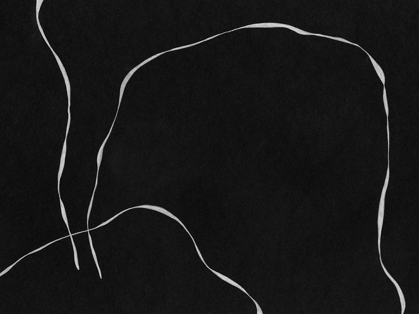 黒い背景に細い白い波線が描かれた抽象的なポスター。モダンなウォールアートにぴったりなシンプルでミニマリストなデザインです。