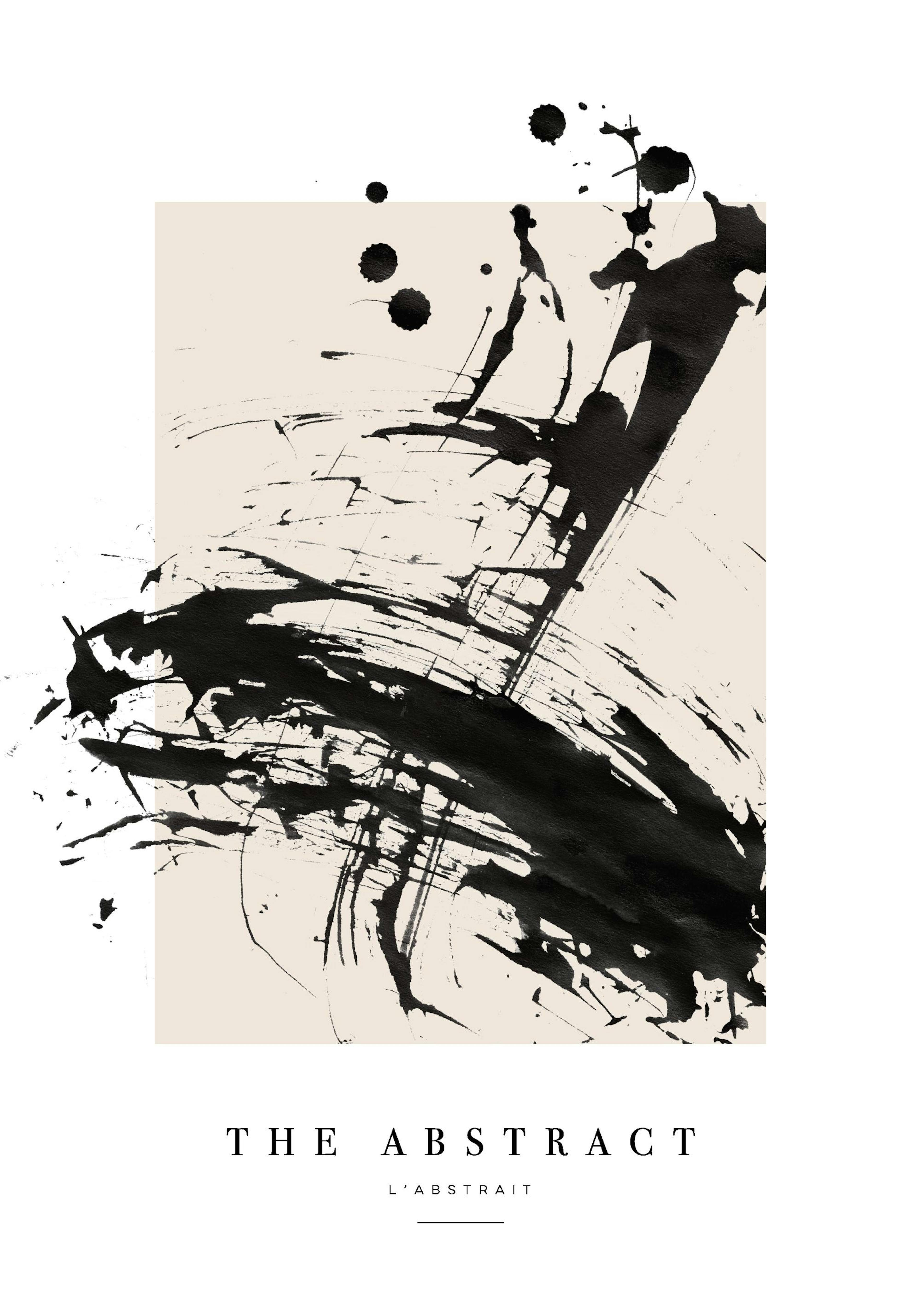 Abstract painting with paint splatter in black on a beige background, and "The Abstract L'Abstrait" written underneath. Together with The Abstract No1 this print make a perfectly matching pair.