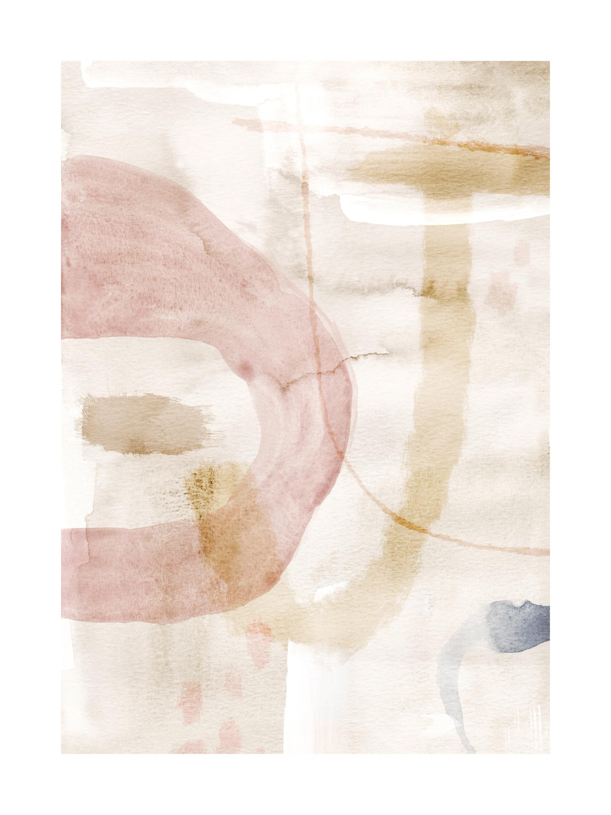 Watercolour print of different shapes in soft colours with a trendy look. Artsy poster perfect as a decoration for the bedroom.