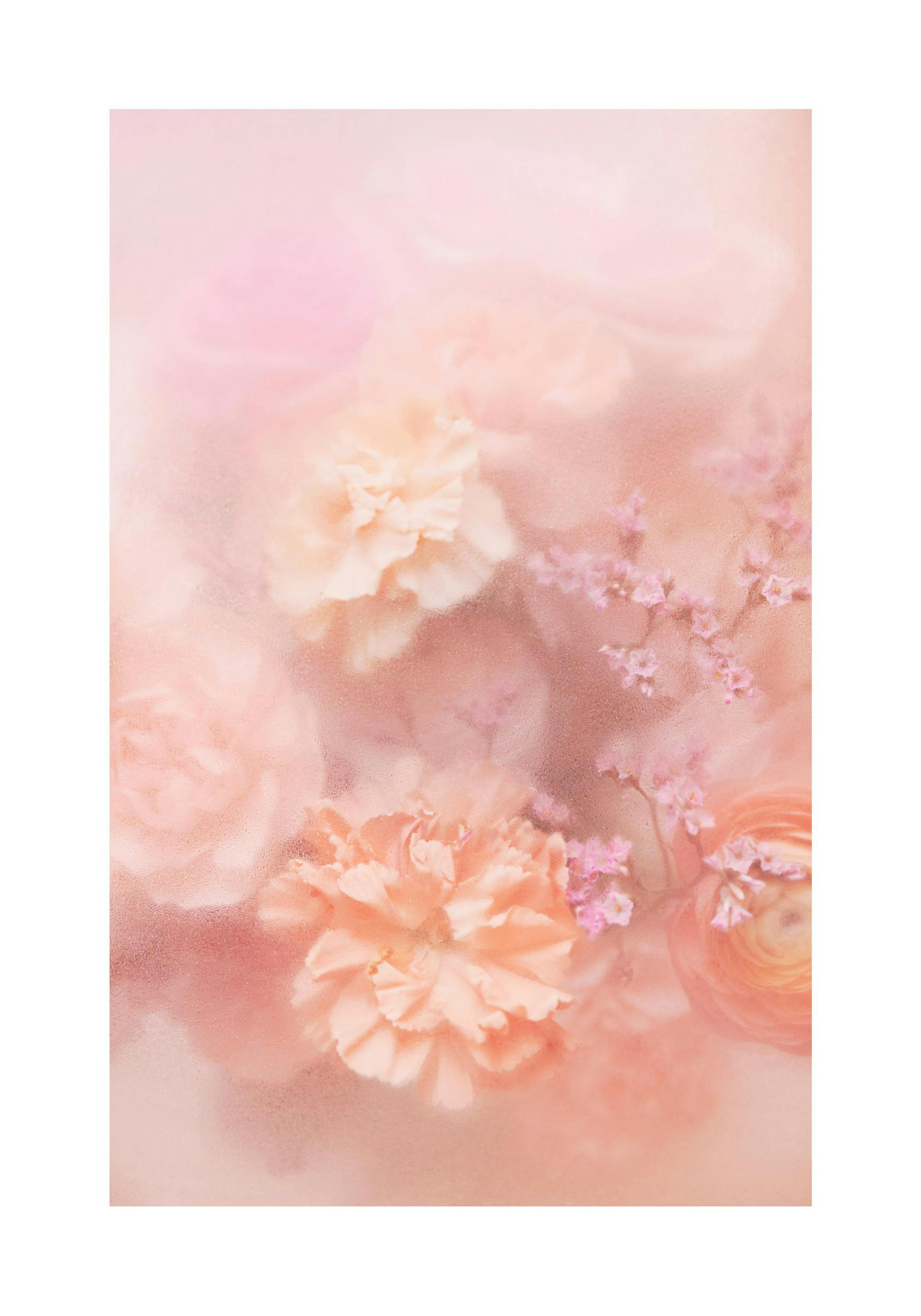 Flowers in calm peach and pink colours, with an unsharp surface, giving the poster a more mysterious feel. Pretty print to decorate the bedroom with for a romantic touch.